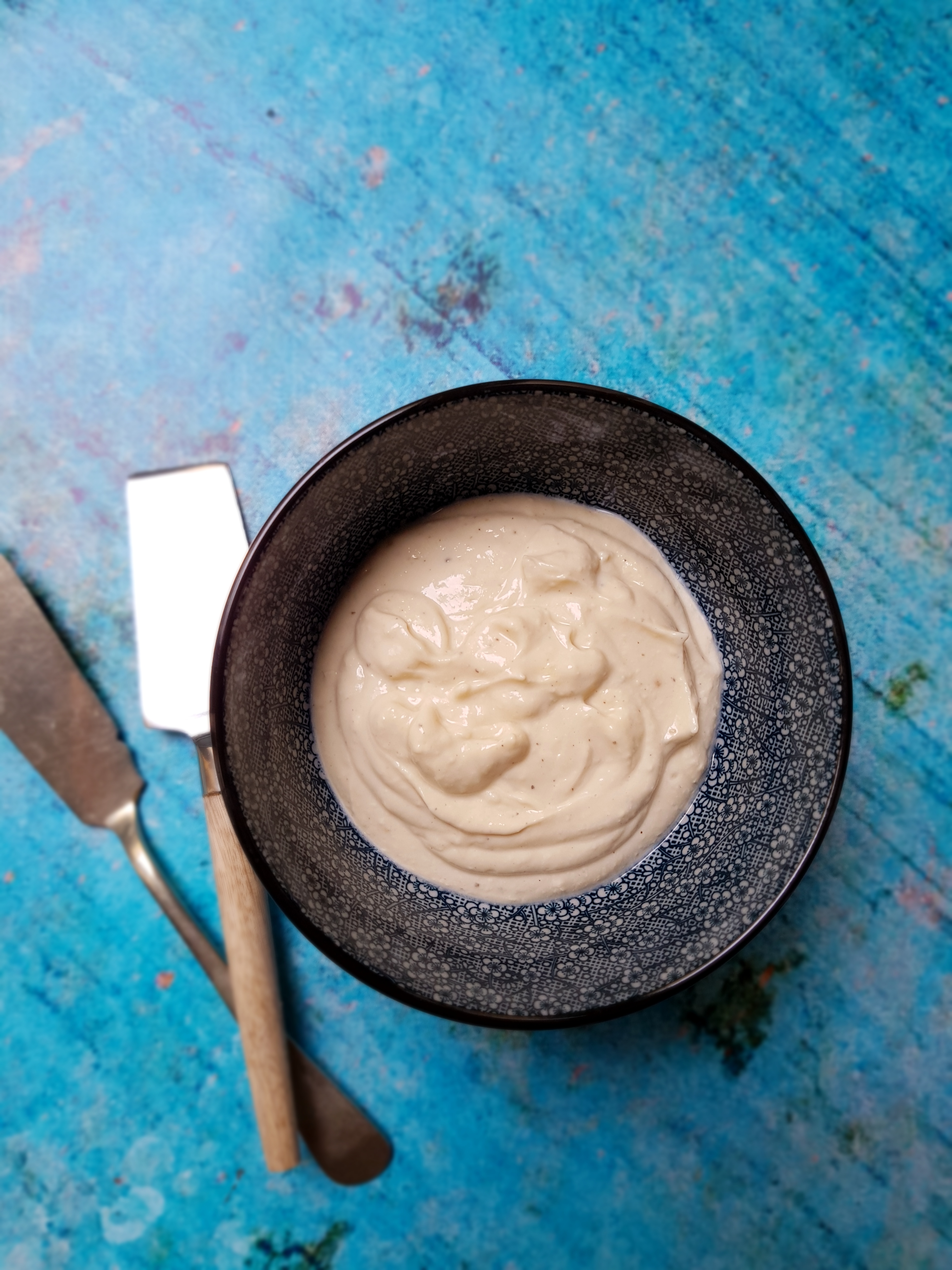 There were two problems with mayonnaise until now: a) it is full of fat, and b) it is incredibly tedious, time-consuming and tricky to make yourself. Obviously, traditional mayonnaise being made from eggs is off-limits if you are vegan or intolerant/allergic to eggs (not to mention the risk of contracting salmonella). If you have ever attempted to make your own mayonnaise, or even tried to “healthify” it, you are in good company. According to internet searches, it is one of the most coveted items to make vegan, oil-free or egg-free. But the plethora of recipes for vegan mayonnaise you can find online were not what I was looking for, either. They generally still use a lot of oil, making a very high-fat vegan substitute or they use cashews as base which are also high in fat, expensive and not suitable if you have nut allergies.