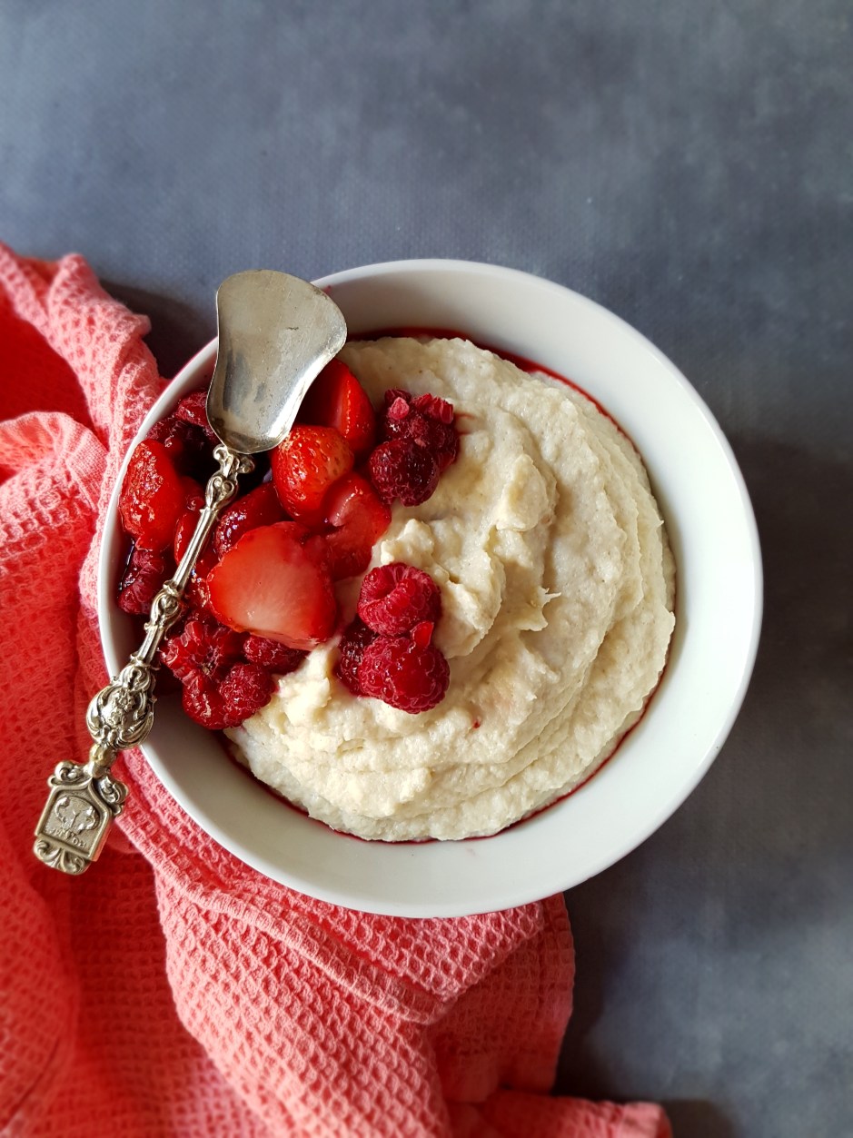 So for all the lovers of cream of wheat and Grießbrei out there, here is a healthy version that will absolutely knock your socks off! Besides, it is ready in only a few minutes and it is vegan, gluten free, paleo, low carb and low fat! How about that!! It is also extremely filling, rich in protein and fibre and the best way to get one of the world’s healthiest vegetables into your child. Even my fussy toddler loves it. You will never walk past cauliflower again!