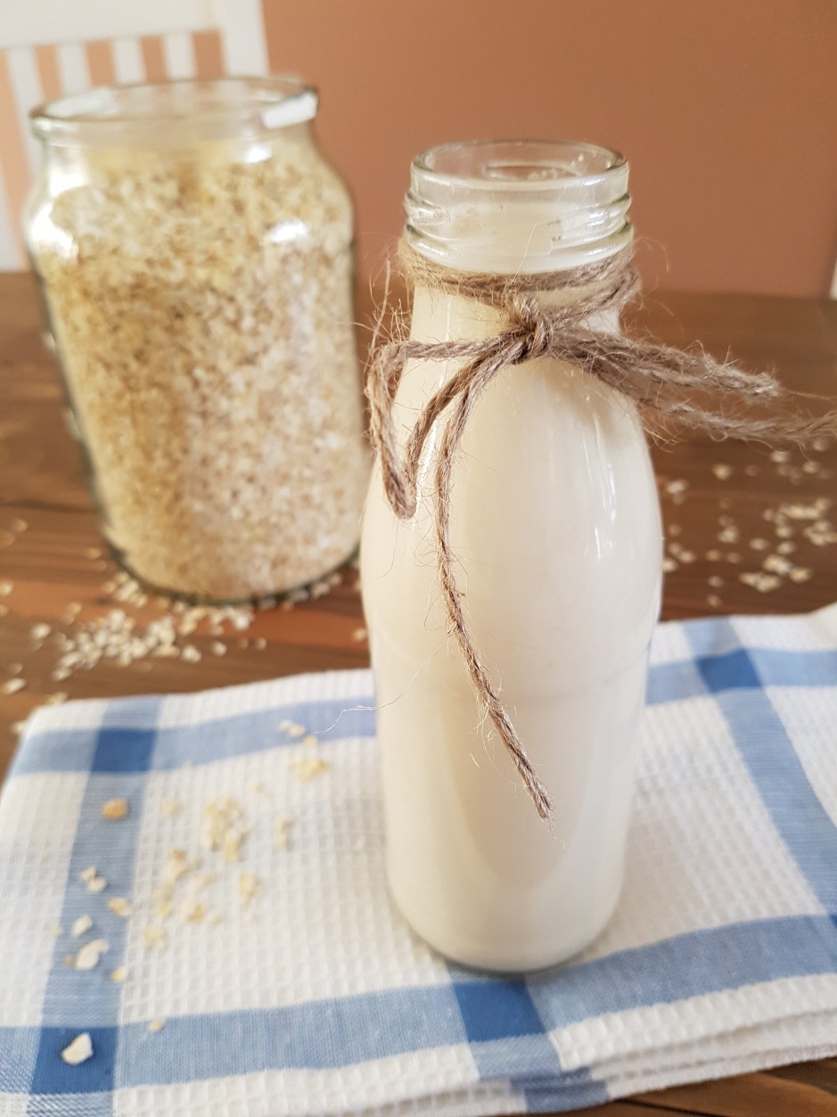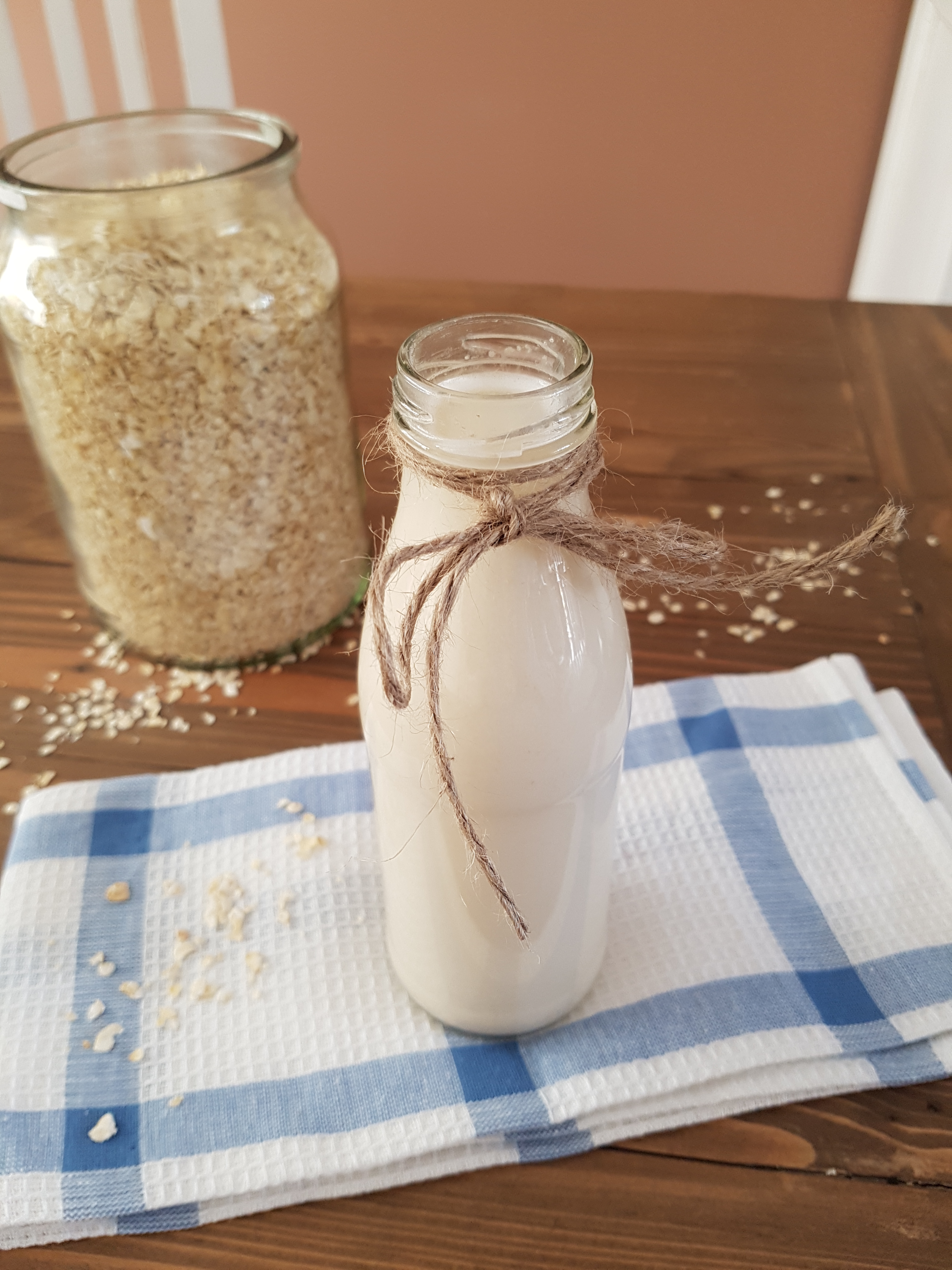 It dod not take much experimenting as this worked out quite well at the first shot. I blended 1 cup of quick oats with 3 cups of filtered water. This ratio produces a very thick and creamy milk which I love but you could also try a ration of 1:4 which would produce a slightly thinner milk. Just experiment! I don’t add any sweeteners but you could try adding a tablespoon or so of your favourite liquid sweetener (maple syrup, date syrup or coconut syrup would probably work best). You could also try adding some vanilla essence or cocoa powder or any other flavour you fancy. Then, just strain the milk in a bottle, chill and enjoy!