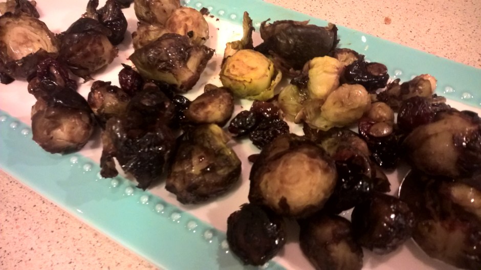 While my hubby’s nonna uses oodles of garlic and oil to make vegetables tasty, I came up with a different approach, namely a balsamic maple glaze with cranberries and pepitas. The sweet and sour combination of the maple syrup and the balsamic together with tart cranberries and crunchy pepitas offset the cabbage-y flavour of the sprouts which become a scrumptious caramelised melt-in-your-mouth side dish or snack. The fact alone that half a cup of sprouts accounts for one fifth of your daily folate requirements should be reason enough to give these guys a chance – but this recipe will win over even the most ardent sprouts hater.